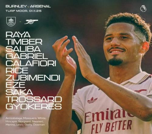 阿森纳首发:哲凯赖什出战英超 11-01 21:48英超第10轮,阿森纳客战伯恩利,赛前阿森纳首发阵容已经出炉,具体名单如...