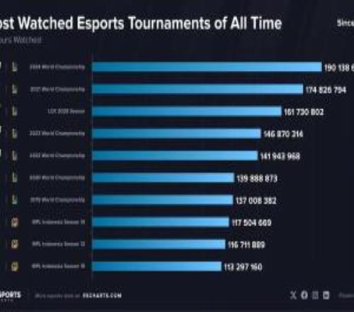 电竞赛事的GOAT!外媒统计史上观看量最高的电子竞技赛事:LOL项目包揽前七
