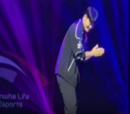 电竞体育1月4报道 HLE选手见面会上,下路选手Gumayusi跳舞“宋智恩《漂亮的年...
