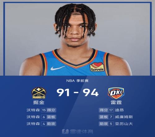 NBA季前赛:迪昂三分绝杀&约基奇休战,雷霆9491掘金