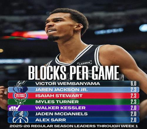 NBA首周球员数据:亚历山大得分王,字母哥篮板王&文班盖帽王