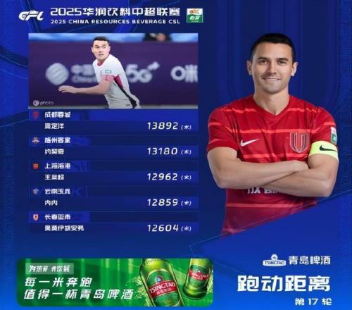 破纪录!大连英博外援单场跑动超1.4万米:中超近4年第一人