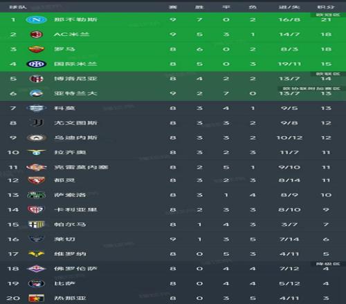 意甲第9轮结束了两场比赛,最新积分榜如下!