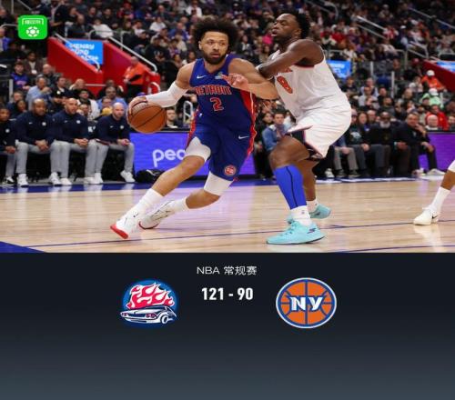 第四节活塞贾文特-格林拿下12分,尼克斯麦克布莱德拿下9分,最终活塞121-90战胜尼克斯