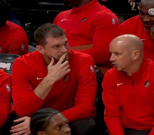 实际上第4节哪怕进入垃圾时间,开拓者领先快30分,斯普利特还是不愿意让杨瀚森上,克林根在还剩5分钟的时候就已经双手叉腰,累得受不了了。他当时已经在向教练主动招手示意,把小杨换上去,让他休息一会,但斯普利特第一时间还是没有换人。